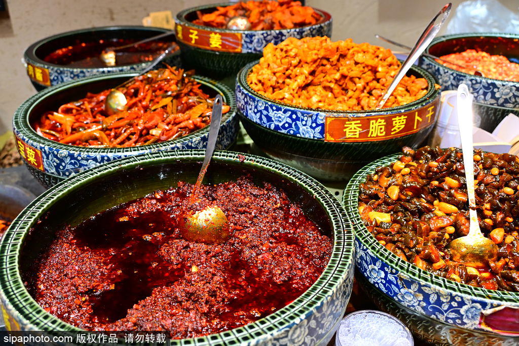 Hay una variedad de salsas, encurtidos y verduras saladas, por ejemplo salsa de ternera casera, salsa de ternera con frijoles negros fermentados, salsa de ternera con champiñones, salsa de ternera con pimienta, salsa de ternera picante, salsa de ternera con mariscos, verduras frescas picantes, pepino encurtido, frijoles agrios con aceite rojo, ajo Laba especial, rábano seco crujiente, etc. Entre estos productos, hay productos salados, los ligeramente picantes, los medianamente picantes y los extra picantes, que son aptos para diferentes grupos de personas. Todos los productos son ricos. Sea para tomar junto con los fideos o sea para tomar junto con los arroces, son productos ideales.
