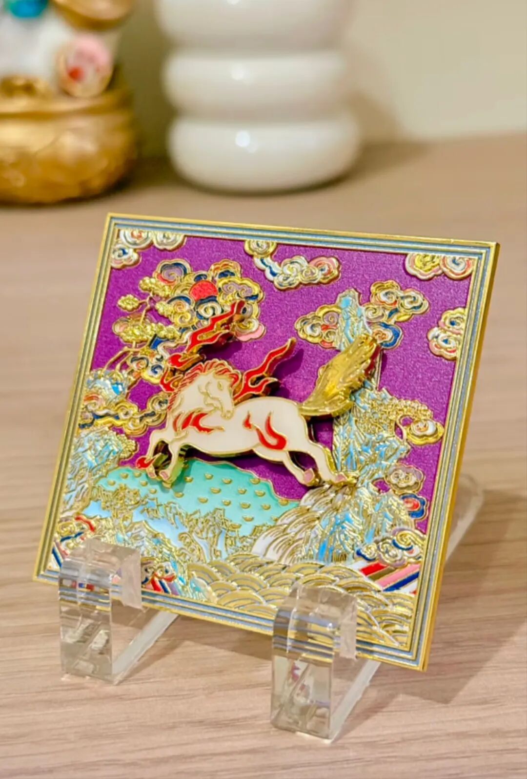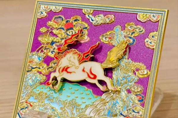 Basado en las regulaciones de los "Estatutos Recopilados de la Dinastía Qing" y el "Catálogo Ilustrado de Instrumentos Rituales Imperiales", el patrón del caballo de mar se utilizaba como un símbolo de insignia para los oficiales militares del noveno rango en la dinastía Qing. Para celebrar el próximo Año del Caballo, este imán para refrigerador está inspirado en la pieza de tela de la túnica de un oficial militar del noveno rango de la dinastía Qing. A través de un imán de doble capa, el caballo de mar se puede extraer y colocar fácilmente en la parte inferior del imán.